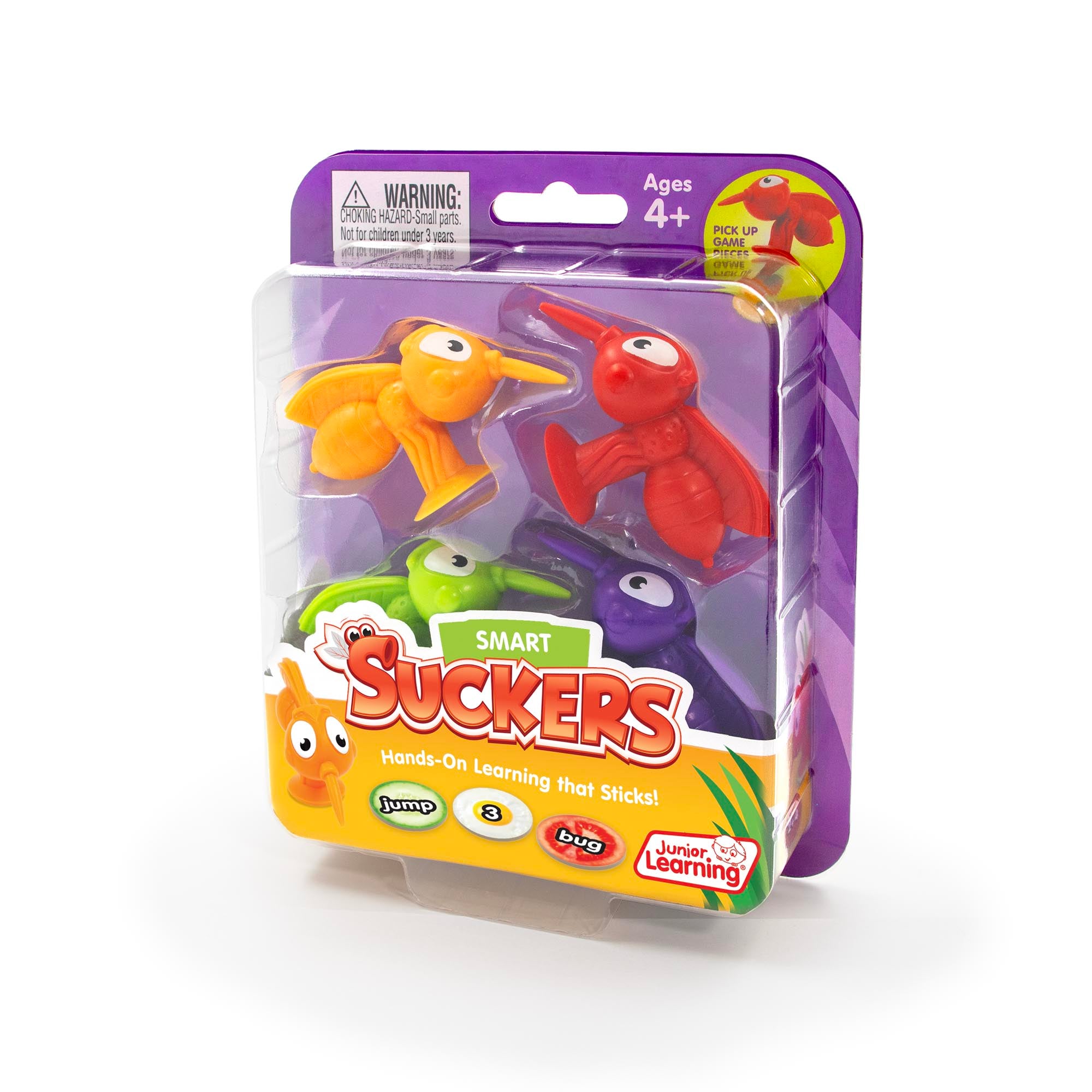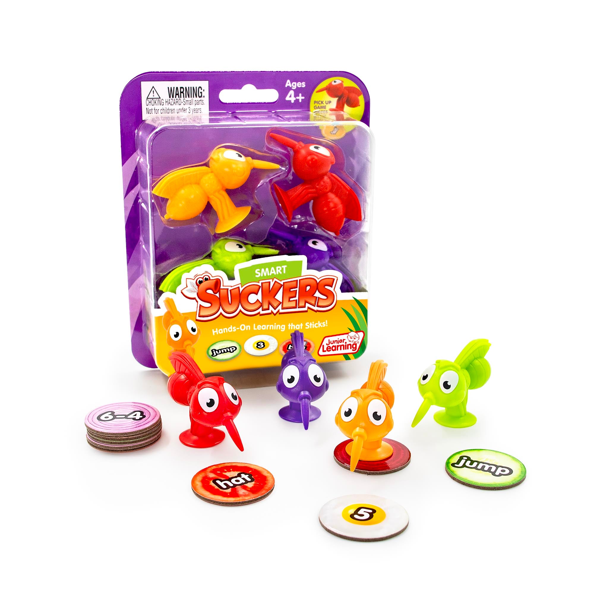 Smart Suckers – Hands-On Learning that Sticks! Turn learning into a fast-paced, interactive adventure with Smart Suckers! This set of four suction-cup mosquito toys makes picking up math, literacy, or game tiles fun and engaging. Designed to work with any flat, lightweight pieces especially Junior Learning Snacks tiles (sold separately), which include 90 educational tiles across multiple topics these clever tools encourage speed, focus, and fine motor skill development. Perfect for classroom games, learning centers, or home practice, Smart Suckers make answering questions, spelling words, and mastering skills a playful, hands-on experience that keeps children motivated, confident, and excited to learn every day.